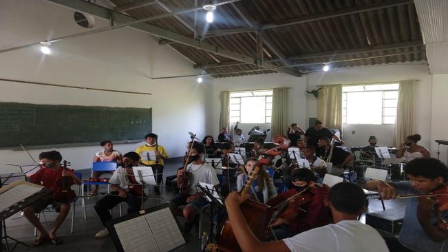 O PROESA – Projeto Orquestra Escola Sinfonia das Águas – em desenvolvimento desde 2017 pela Escola Municipal de Música de Caxambu Prefeito Isaac Rozental, continua abrindo oportunidades para o aprendizado musical. Com o objetivo de estimular a formação de uma Orquestra Sinfônica Jovem, atrelada à construção de oportunidades no campo profissional para a qualificação de adolescentes e jovens, não só musicalmente, mas em sentido amplo, o PROESA promove o acesso ao conhecimento e autoconhecimento que a experiência com a música pode proporcionar. As fotos registram a aula desta quarta-feira (30) com os grupos de instrumentos todos juntos. A Escola Municipal de Música Prefeito Isaac Rozental tem cerca de 350 alunos atendidos gratuitamente com idades entre 8 e 17 anos. As aulas do PROESA acontecem em 2 turnos, manhã e tarde, com ciclos de aulas que vão de 3 a 5 vezes na semana dependendo do turno. Mais informações para saber como participar: Redes Sociais: Instagram: @escolademusicacaxambu Facebook: Escola-Música Prefeito Isaac Rozental Contatos: Whatsapp: (35) 98831-4722 Telefone: (35) 3341-0746