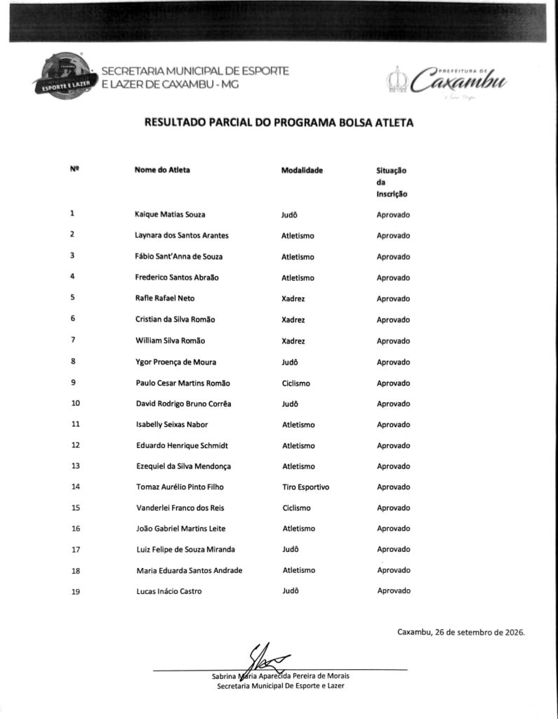 Seleção e concessão de bolsas a atletas residentes no município de Caxambu